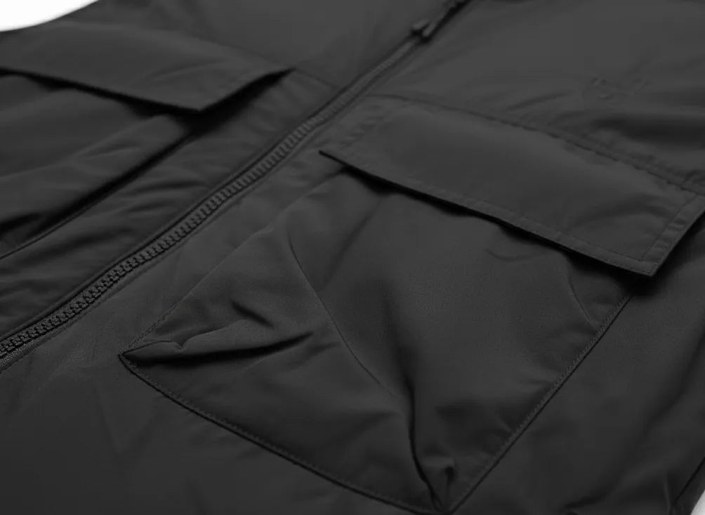 Sa coupe droite et son design minimaliste mettent en avant un contraste audacieux entre le noir profond et le zip vert fluo signature.